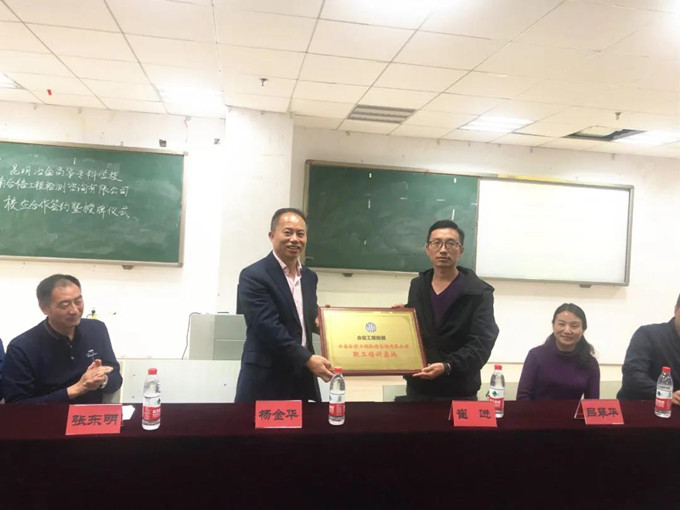10月26日,國檢集團•云南合信工程檢測咨詢有限公司與昆明冶金高等??茖W校校企合作簽約暨授牌儀式在冶金學校隆重舉行。冶金學校校長楊金華、副校長張東明,云南合信公司總經(jīng)理崔進、副總經(jīng)理梁海龍、學校相關學院的領導、云南合信公司相關部門負責人,以及數(shù)百名學子參加了活動。