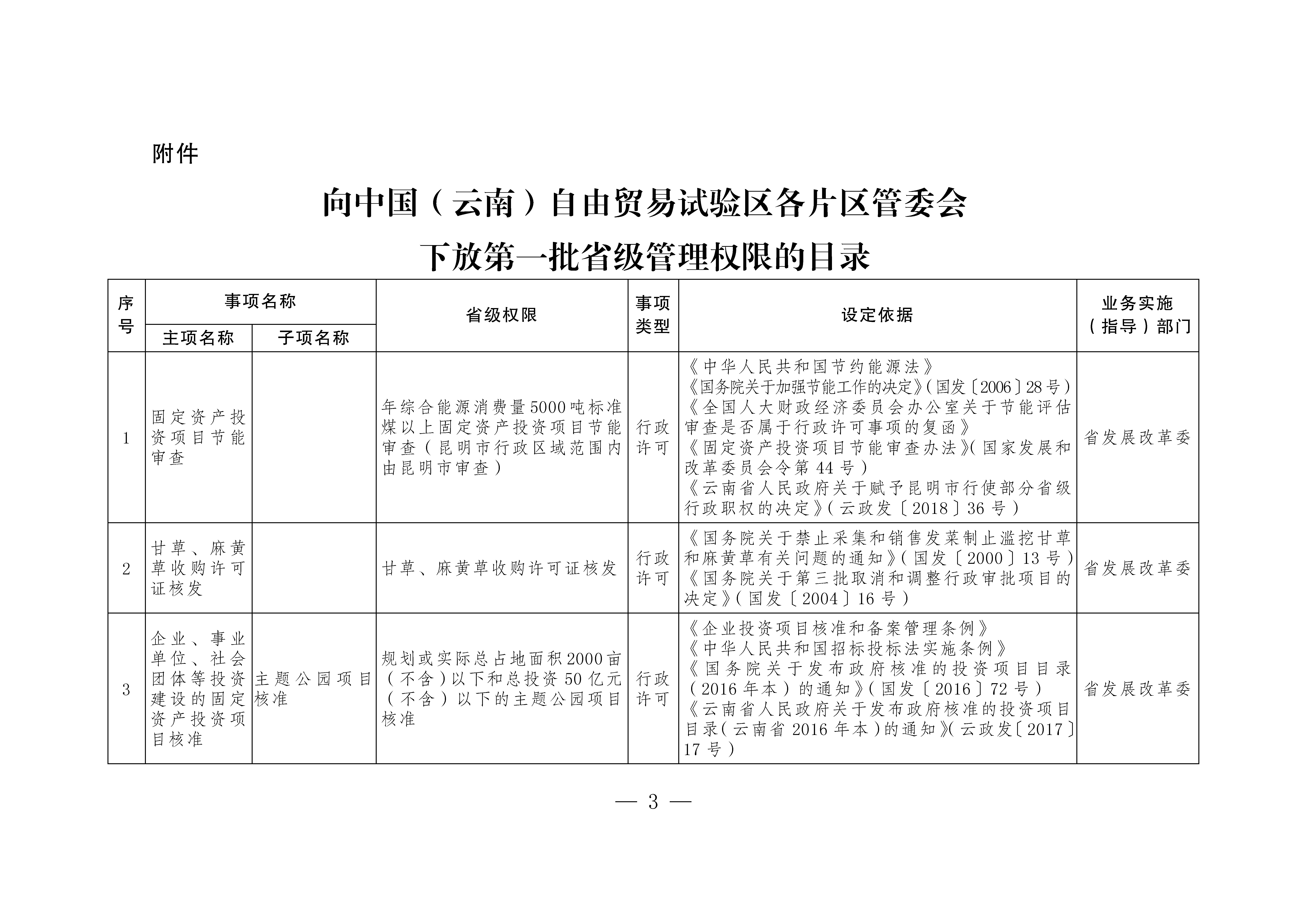 附件:向中國(云南)自由貿(mào)易試驗(yàn)區(qū)各片區(qū)管委會下放第一批省級管理權(quán)限的目錄