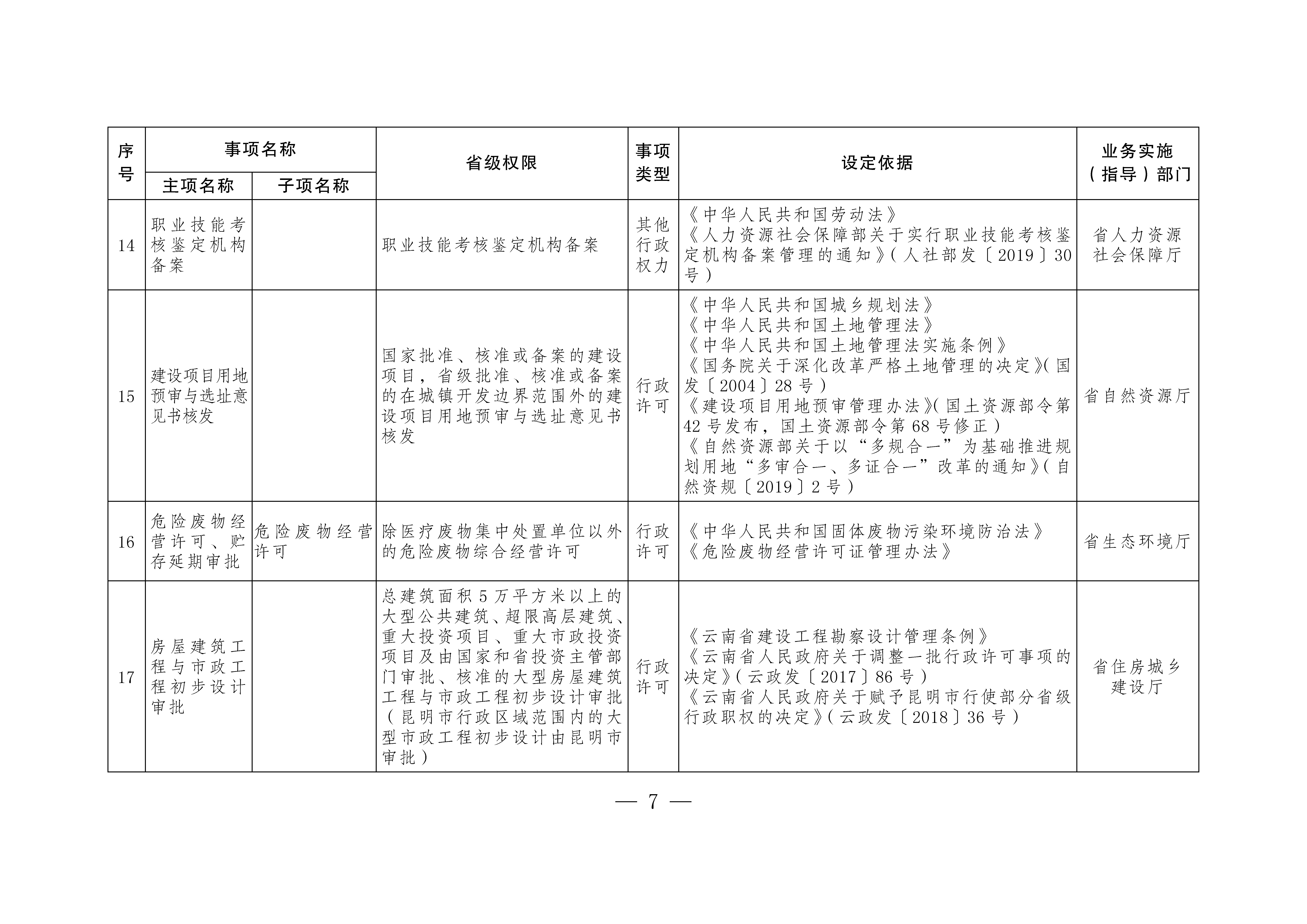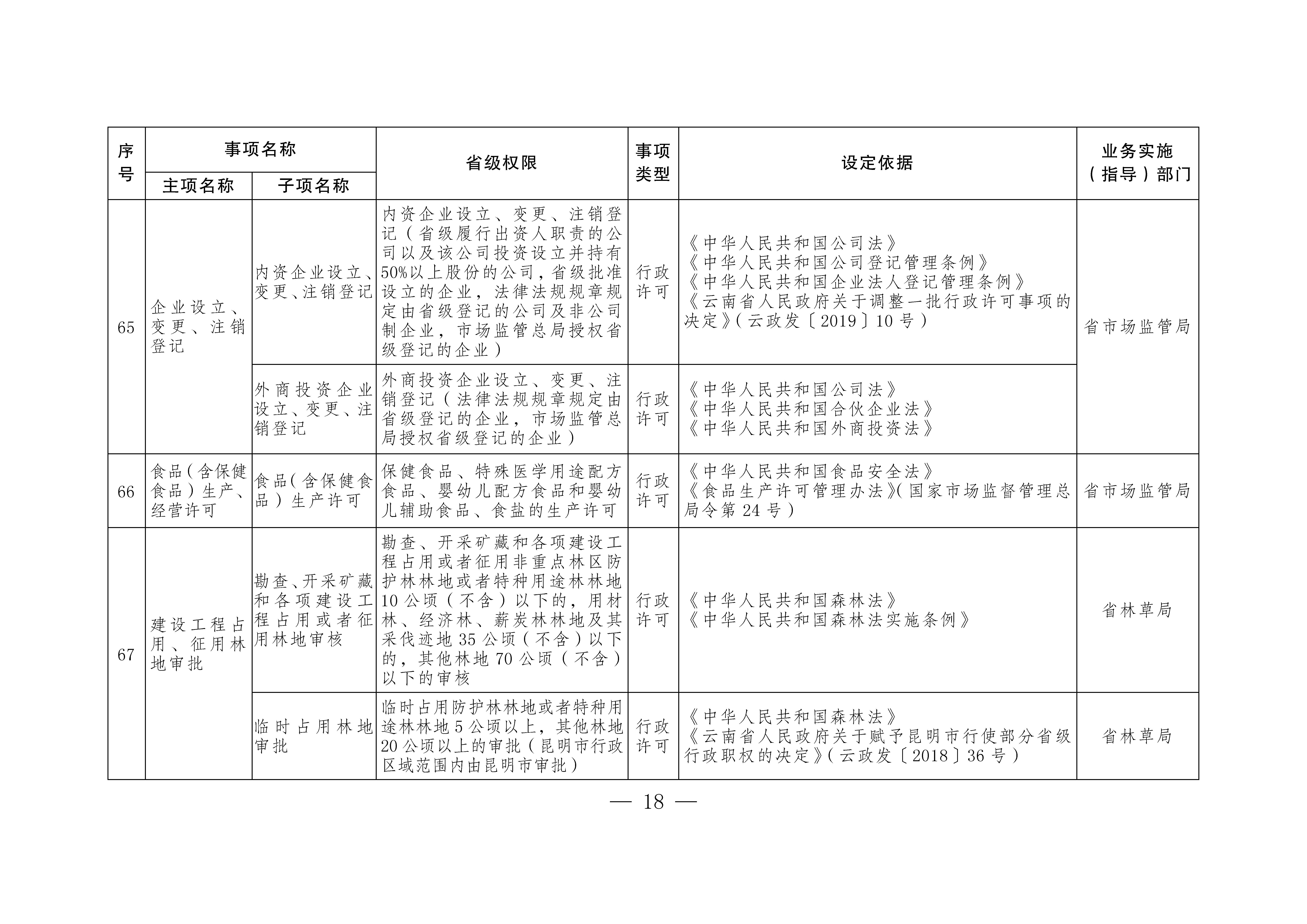 按照《國務(wù)院關(guān)于印發(fā)6個(gè)新設(shè)自由貿(mào)易試驗(yàn)區(qū)總體方案的通知》(國發(fā)〔2019〕16號)和《國務(wù)院關(guān)于同意新設(shè)6個(gè)自由貿(mào)易試驗(yàn)區(qū)的批復(fù)》(國函〔2019〕72號)精神,省人民政府研究決定,向中國(云南)自由貿(mào)易試驗(yàn)區(qū)(以下簡稱云南自貿(mào)試驗(yàn)區(qū))昆明、紅河、德宏片區(qū)管委會下放第一批省級行政權(quán)力事項(xiàng)73項(xiàng),其中行政許可事項(xiàng)55項(xiàng),行政確認(rèn)事項(xiàng)2項(xiàng),其他行政權(quán)力事項(xiàng)16項(xiàng)。