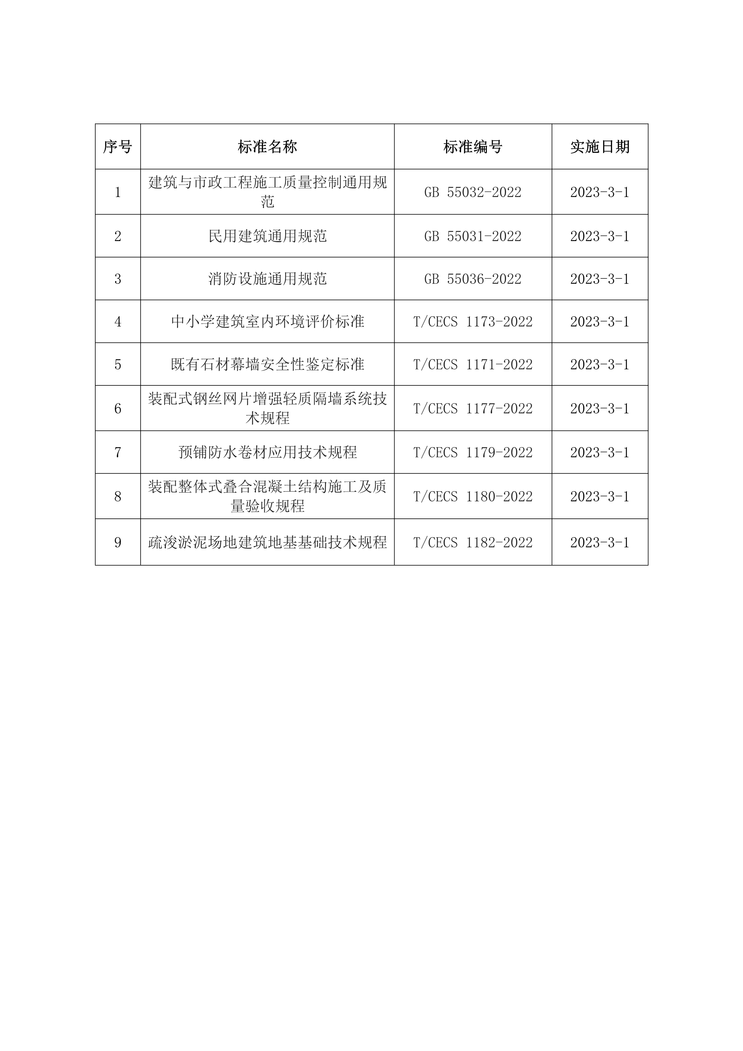 2023年3月開始實施的工程建設(shè)標(biāo)準(zhǔn)