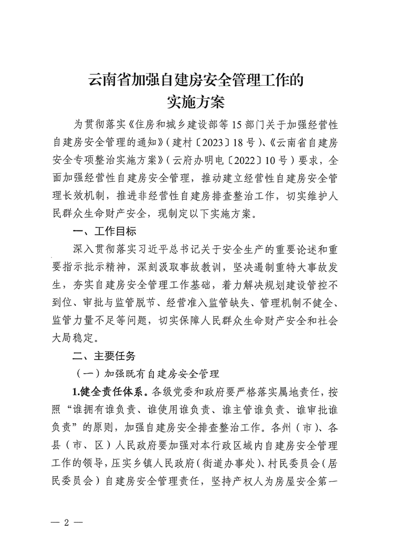 云南省自建房安全專項整治工作領(lǐng)導小組辦公室關(guān)于印發(fā)《云南省加強自建房安全管理工作的實施方案》的通知