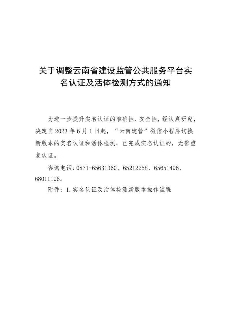 關(guān)于調(diào)整云南省建設(shè)監(jiān)管公共服務(wù)平臺(tái)實(shí)名認(rèn)證及活體檢測方式的通知